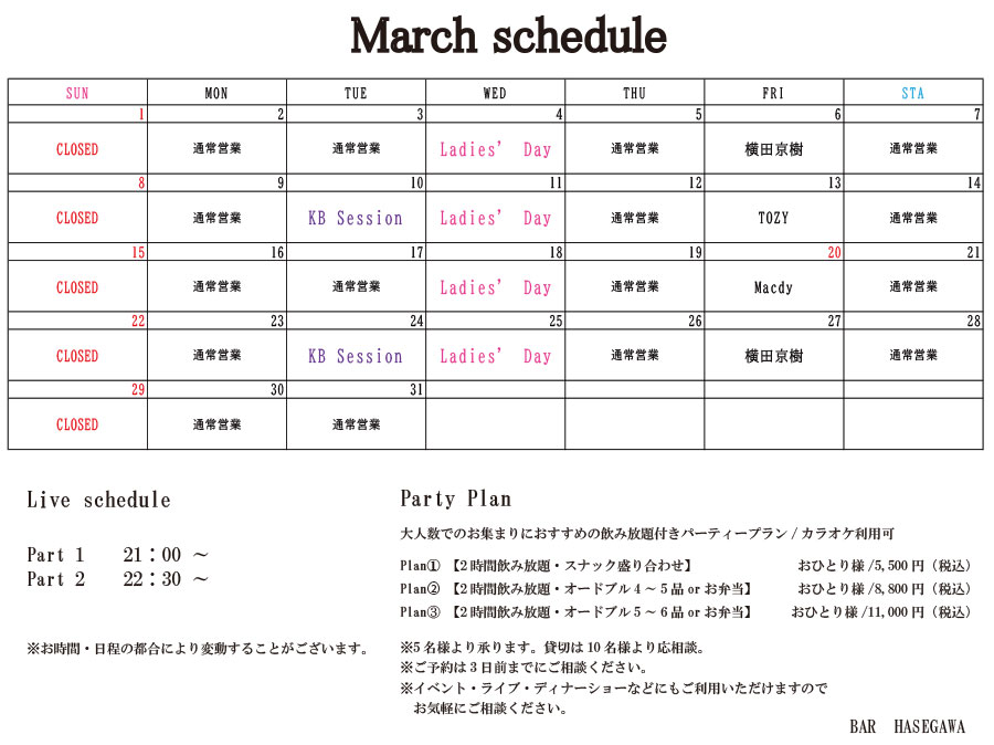 2026年3月のスケジュール